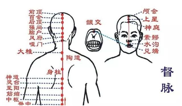 如果督脉瘀阻,阳气生发不好,颈椎、胸椎和腰椎都会跟着出现问题,这样一来全身都会受到牵连,引发脑供血不足、中 风、脑退化、肩周炎、血糖不稳等几十种病症。