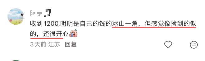 帖子的评论区里也都是网友们晒出的银行到账截图,有网友评论道,“明明只是自己的钱的冰山一角,但感觉像捡到钱似的,还是很开心”。