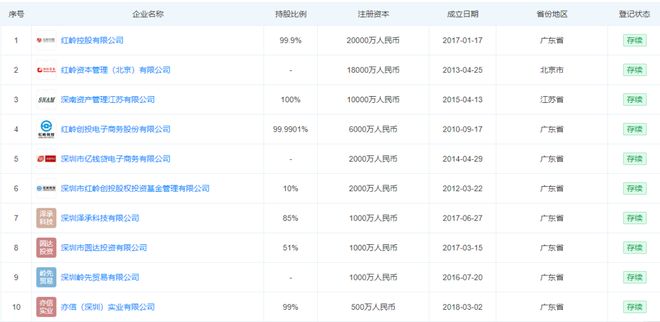天眼查显示,目前周世平名下作为法定代表人的企业还有10家存续,同时他还担任15家存续企业的股东。其中包括“红岭创投”核心企业——红岭创投电子商务股份有限公司,周世平担任法定代表人、董事长并持股约99.99%。